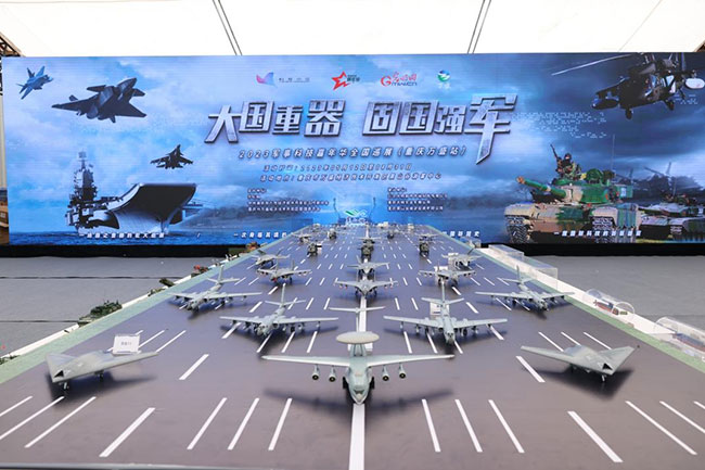 辉煌历程展区以时间主线,将我国军事科技领域的重要任务和重大事件,形成时空长廊,再现“大阅兵”的恢宏场景;陆战骄子展区则是展示陆军现代化建设成果的重要展区,各型1:1比例的装备模型,让人们深刻体会到中国陆军装备的壮大;剑指深蓝展区聚焦海军强大舰艇装备,各型号军舰和先进武器系统的展示让人们感受到海军走向深蓝的勇气;蓝天利刃展区则展示空军先进武器和战机,各型号战机和导弹的专业介绍让人们体验到空军的迅猛发展;鸣啸长空展区则是以“两弹一星”为主力展品,并结合导弹发射车、空天一体打击体系等内容,展示我国战略打击力量;深空探秘展区则是展示我国太空事业发展成果的重要展区,各类卫星、火箭、空间站的展示,让人们感受到中国太空事业的高速发展。