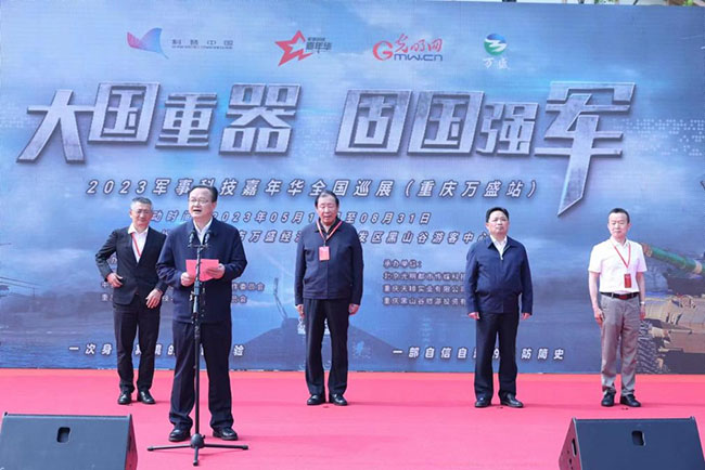 万盛经开区党工委副书记、管委会主任胡珍强诚挚邀请四海宾客到访万盛,并表示巡展充分激发了群众爱祖国、爱家乡的热情,零距离接触到各型军事装备,聆听军事专家的现场讲座,更能品尝到独具特色的各类万盛风味美食。重庆市委宣传部二级巡视员蒋大权表示本次巡展立足于新时代、新征程、新重庆的大背景,营造了“国防为全民”的良好社会氛围,是重庆市委全民国防教育工作领导小组会议精神的积极落实,有效健全了全民国防教育工作机制。