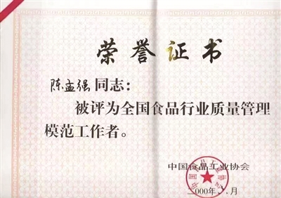 1987年,陈孟强参与起草了《保国际金牌夺国际金奖》的专题报告,并在全国轻工行业工作会议上进行了汇报。