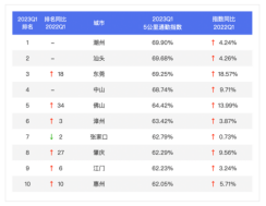 2023年第一季度,百城1小时通勤指数榜TOP10主要为二三线城市,其中TOP3城市是潮州、汕头、中山,通勤一小时可达性越高,通勤幸福感越强;5公里通勤指数TOP10城市中有8个城市位于广东省,其中佛山、东莞为新一线城市。