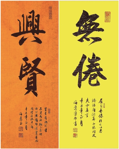 书法是中华优秀传统文化的重要构成之一,也是人类文明的瑰宝。葛海鹰对中国优秀传统文化拥有十分自信的态度。在他看来,学习书法既是个人的兴趣爱好和修身养性良方,也是为传承和弘扬中华优秀传统文化、彰显人类文明的光辉尽一份力,更是坚定我们文化自信的一种具体实践。葛海鹰将自己的书斋取名“三忘斋”,即是借用《论语》“发愤忘食,乐以忘忧,不知老之将至”句意,以激励自己不懈努力,追求忘我境界。