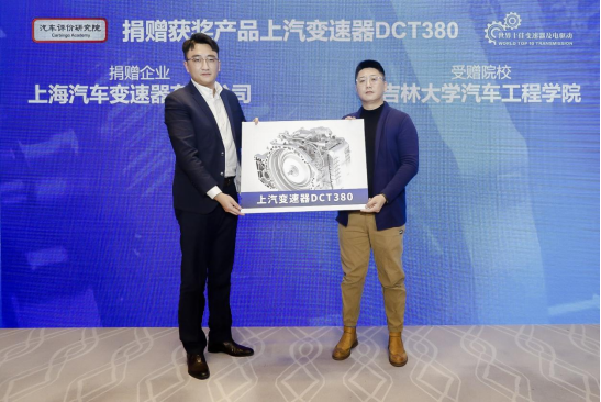 在获奖名单正式揭晓后,上汽变速器有限公司向吉林大学汽车工程学院捐赠了获奖的上汽变速器DCT380用于教研,助力了汽车产业创新人才培养和学术研究。