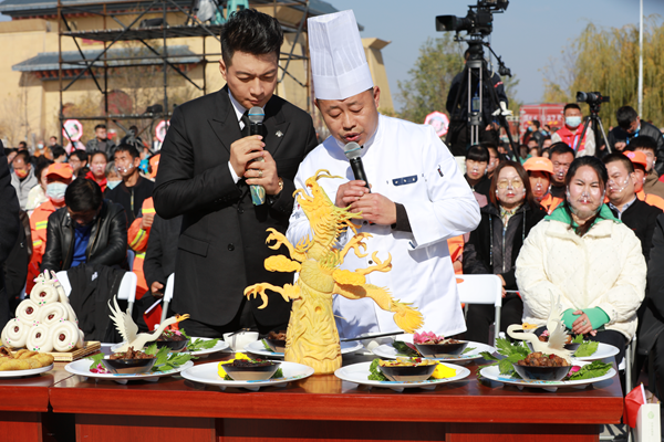 一城一滋味,见食见江湖。美食既能带来溢满舌尖的幸福感,又能投射出好日子给人民带来的满满喜悦。活动现场,来自清涧县煎饼非遗传承人刘璐、清涧县政协专职常委韩世强、清涧县八大碗非遗传承人郝小龙带大家感受舌尖清涧的非凡滋味!清涧有三大美食:煎饼、红枣、八大碗。清涧煎饼是榆林市清涧县一种独特的地方风味小吃,用荞麦做成,早在元代王桢所著的《农书》中,就有“荞麦治去皮壳,磨而成面,摊作煎饼,配蒜而食”的记载。可谓历史悠久。在改革开放的今天,清涧煎饼也逐渐走出了家门,本着荞麦乃黄土高塬纯杂粮功效粗粮细吃。“摊一张饼,喧一座城”。清涧煎饼非遗传承人刘璐希望通过自己的努力让清涧煎饼走出清涧,款待世界。清涧县政协专职常委韩世强为大家带来了红枣宴。清涧作为世界红枣原产地的中心之一,早在1995年就被全国首批百家特产之乡命名组委会命名为全国唯一的“中国红枣之乡”。2012年成功注册“清涧红枣”国家地理标志证明商标。红枣,古称其为木本粮食、铁杆庄稼,还有俗语“一日仨枣,长生不老”,所以红枣被枣乡人民淋漓尽致地应用在饮食中。除了煎饼和红枣,清涧人民最爱的家常菜就是八大碗。清涧县八大碗非遗传承人郝小龙为大家介绍了清涧八大碗的来历,它是由宫廷“满汉全席”下八珍在清涧民间演化成俗。八大碗在当时集中了扒、焖、酱、烧、炖、炒、蒸、熘等烹饪手法。菜品包括红烧肉、红条肉、清蒸羊肉、红烧猪排,红烧丸子,金钱肉(清蒸灌肠)、炖肉,喇嘛肉八个荤菜。在民间,红白喜事宴席设硬八碗,便认为“事情”过得隆重气派。一方热土,几道美食,便能品尝清涧的百味,感受非凡至味里最纯粹的幸福。