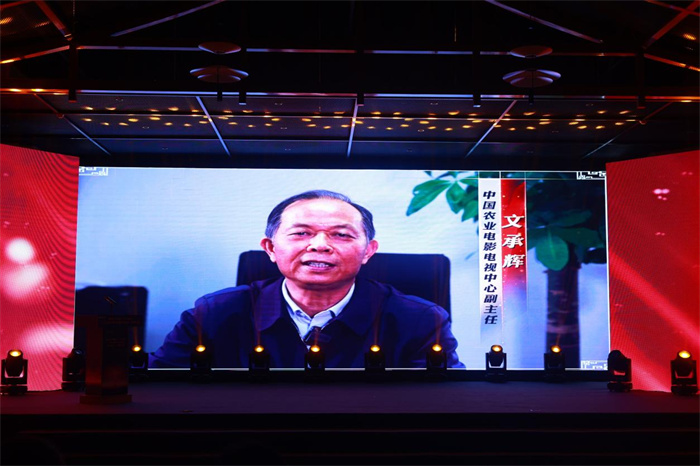 中国农业电影电视中心副主任文承辉代表主办方中国农业电影电视中心对此次活动的举办表示热烈祝贺。他说:“自2005年以来,三农人物大型公益推介活动已成功举办十四届,在全社会营造了关注农业、关心农村、关爱农民的浓厚氛围。作为农业农村部直属新闻宣传单位和我国三农事业发展与乡村振兴伟大实践的忠实记录者,中国农业电影电视中心始终扎根在对农宣传、为农宣传的第一线,先后承办、承制了CCTV-7农业节目和CCTV-17农业农村频道部分栏目,并持续在网络端、手机移动端等新媒体方向重点发力,构建起了以中国三农发布、三农头条为头部的新媒体传播矩阵,全网粉丝量达到4400多万,有效发挥了对农宣传国家队和主力军作用。本次活动,农视网矩阵将全程直播,和广大网民朋友一起见证“三农人物”向上的力量。”