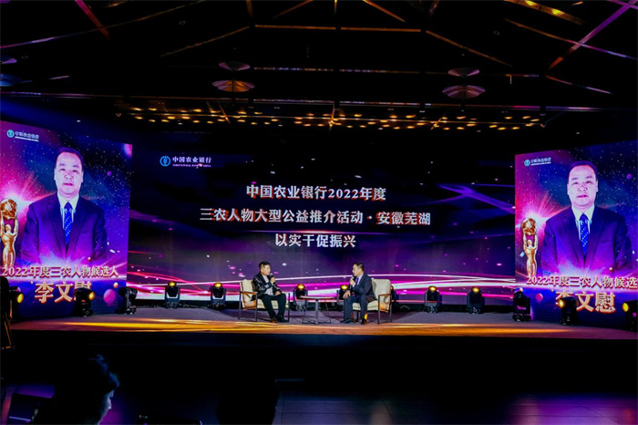 2022年11月25日,中国农业银行2022年度三农人物大型公益推介活动《向上的力量》在“半城山半城水”的大美江城安徽芜湖举行。本次活动由农业农村部办公厅、国家乡村振兴局政策法规司指导,中国农业电影电视中心、中国扶贫发展中心主办,中国农业银行冠名支持。中国农村专业技术协会理事长、中国农业大学原校长、 2017年度三农人物柯炳生,中国农业电影电视中心副主任文承辉,中国扶贫发展中心副主任罗朝立,安徽省芜湖市委常委、市委宣传部长韦秀芳,芜湖市湾沚区委书记殷琼,中国农业银行芜湖分行党委书记、行长王汉志等领导和嘉宾参加了本场活动,与2022年度三农人物候选人一起相聚芜湖。