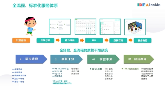 只需一间20平米的示范教室,运用标准化的服务方案,就可以把深耕行业多年沉淀的IDEA教学模式带回机构/学校/幼儿园/医疗单位,进行数字化、标准化的康复干预。一个标准的、数字化管理的爱迪因教学示范教室,可以复制到任何一个线下中心,开展专业儿童康复干预。