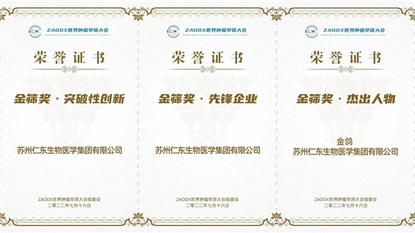 作为泌尿肿瘤精准诊疗的领军企业,仁东医学凭借在泌尿肿瘤早筛领域的技术沉淀和成果转化,在本次大会中荣膺“突破性创新奖”和“先锋企业奖”两大奖项,同时,仁东医学CEO金鸽女士也荣获“杰出人物奖”,彰显了业界对仁东医学在早筛领域的创新实力的充分肯定及认可。