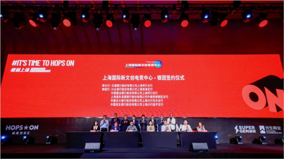 银团签约仪式9月13日下午16时准时开始,超竞集团联合创始人兼CEO,EDG电子竞技俱乐部总裁吴历华率先发表致辞;随后合生商业集团华中区总经理暨泛文娱体育产品线负责人邓汝舜正式公布“上海国际新文创电竞中心”的全新亮相,并邀请了上海超极合生汇总经理丁一铭,分享了项目亮点及未来发展规划。