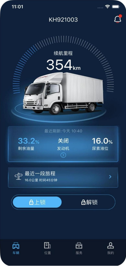 江西五十铃翼放轻卡搭载的车联网系统,是江西五十铃自主开发的车联网平台,搭载先进的车联网系统及智能设备,卡友可以通过手机上安装的“江西五十铃智联”app,智能查询管理车况,分析驾驶行为、优化驾驶习惯;远程查询车辆状态信息及诊断,了解车况出行无忧。如果是企业用户,可以通过车联网实现人、车、货仓的透明化管理,实时掌握车队运营情况,提升车队运营效率,整车运营效率提升30%。另外,还支持防盗及报警,发生事故可第一时间接通紧急救援,远程安排。有了车联网系统,就如同您坐在监控室内,车辆的运行情况一目了然,轻松管理、远程指挥车辆。