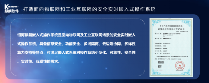 银河麒麟高级服务器操作系统V10(SP3)堪称安全可信操作系统界的“擎天柱”,强安全、高可靠的特性,可实现数字化转型七大典型业务场景的全覆盖;银河麒麟嵌入式操作系统V10隐秘而伟大,是面向物联网及工业互联网场景需求的安全实时操作系统;星光麒麟操作系统1.0是基于Linux内核自主研发、拥有核心知识产权、面向全场景的万物智联操作系统,重点覆盖平板、大屏、手持设备和可穿戴设备业务需求,并全面适配国产主流移动芯片。