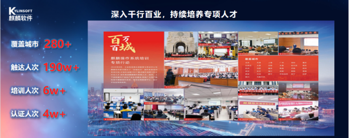 人才是基础。党的二十大报告中强调“要坚持教育优先发展、科技自立自强、人才引领驱动”。会上,工业和信息化部教育与考试中心培训处处长谭志彬发布了《百城百万人才生态建设成果》。报告指出,自工业和信息化部教育与考试中心联合麒麟软件推出“百城百万”操作系统培训专项行动以来,目前已覆盖城市280+,累积培养操作系统专业人才6万+,为网信产业可持续发展贡献人才支撑。