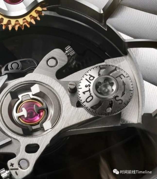 欧米茄在机芯中,使用了最新研发的Spirate系统。Spirate是一种全新的硅游丝微调机构,此前在名表中从来没有出现过。以往机芯调节,只有两种方式: