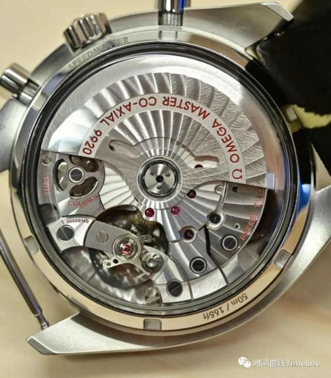 超霸Super Racing使用欧米茄新型9920自动计时机芯,机芯总体上和欧米茄9300/9900系列机芯一致。