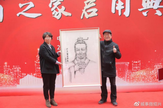 仪式最后,绍兴市知名艺术家林剑华先生向《越商之家》捐赠一幅精心创作的中华商圣范蠡肖像画。