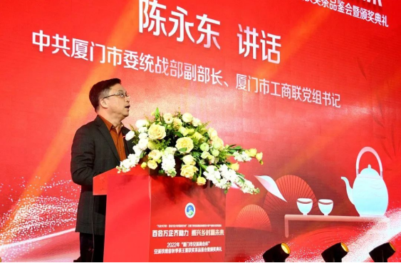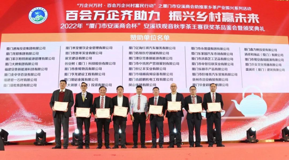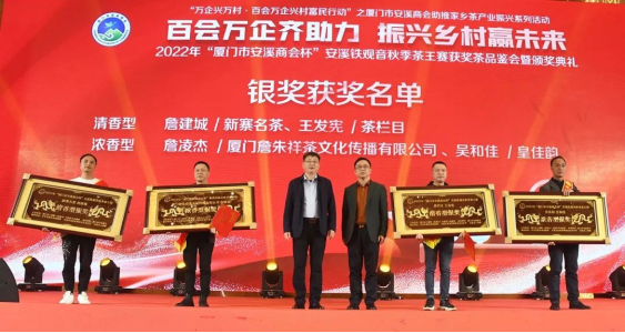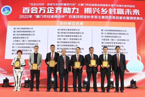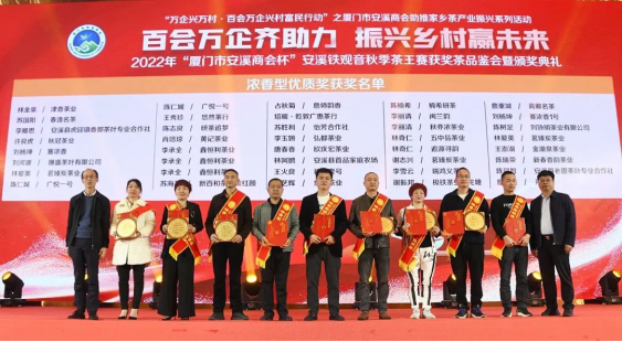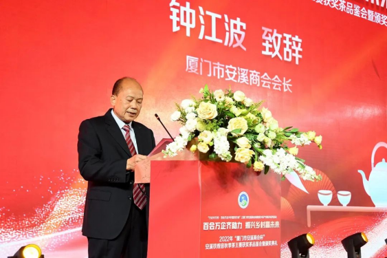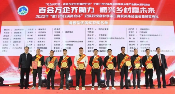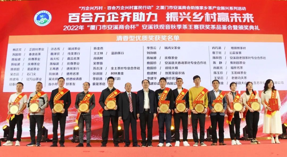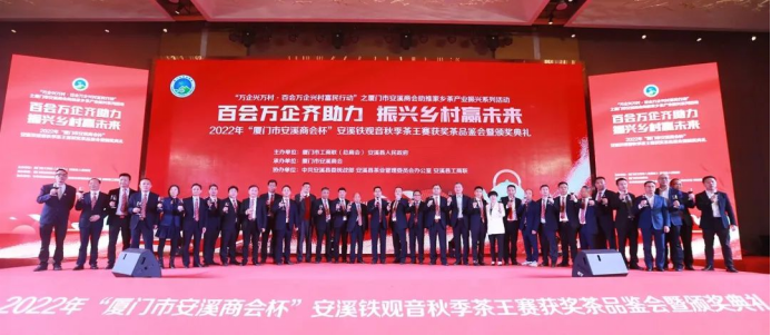 2月24日,由厦门市工商联(总商会)、安溪县人民政府主办,厦门市安溪商会承办,中共安溪县委统战部、安溪县茶业管理委员会办公室、安溪县工商联协办的2022年“厦门市安溪商会杯”安溪铁观音秋季茶王赛获奖茶品鉴会暨颁奖典礼在厦门佰翔五通酒店盛大举行。本次活动是为了进一步落实厦门市工商联和安溪县人民政府提出的“万企兴万村·百会万企兴村富民行动”计划——厦门市安溪商会助推家乡茶产业振兴活动,也是“厦门企业家日”配套活动之一。