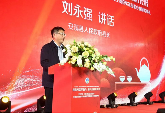 安溪县县长刘永强在讲话中表示,20多年来,厦门市安溪商会团结带领在厦乡亲弘扬爱拼敢赢、靠自己的骨头长肉的精神,拼搏商海,尽显风采,在厦门特区留下了耀眼的茶乡印记。难能可贵的是商会多年来倾心倾力,支持推动家乡茶产业发展,举办“厦门市安溪商会杯”茶王赛已成为规格最高的安溪铁观音茶叶赛事之一,激励广大茶农茶人传承匠心、用心制茶,提升安溪铁观音的美誉度和影响力。安溪是世界名茶铁观音发源地,中国乌龙茶之乡,近年来,安溪县委县政府紧扣三茶统筹,全面推进茶产业高质量发展。得益于茶产业的蓬勃发展,安溪走上了高质量发展快车道,县域综合实力跃升至全国百强县第53位,投资潜力第11位,已成为高新技术产业高地、宜居宜业的发展福地。今年,安溪县委县政府锚定GDP突破千亿,紧扣6个工作抓手,奋力实施七大行动,加快全面建设具有茶乡特色的现代化中等城市。真诚期待厦门市安溪商会和广大乡贤以各种方式参与其中,同时竭诚欢迎各界朋友到安溪品茗观光、投资兴业、共赢未来。