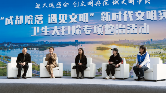 此外,为深入学习贯彻党的二十大精神,围绕“迎大运盛会创文明典范”主题,引导全社会强化“主人翁”意识,让每个人都争当城市文明的倡导者、践行者。近期,天府新区文明办还广泛开展“成都院落遇见文明”新时代文明实践志愿服务活动。