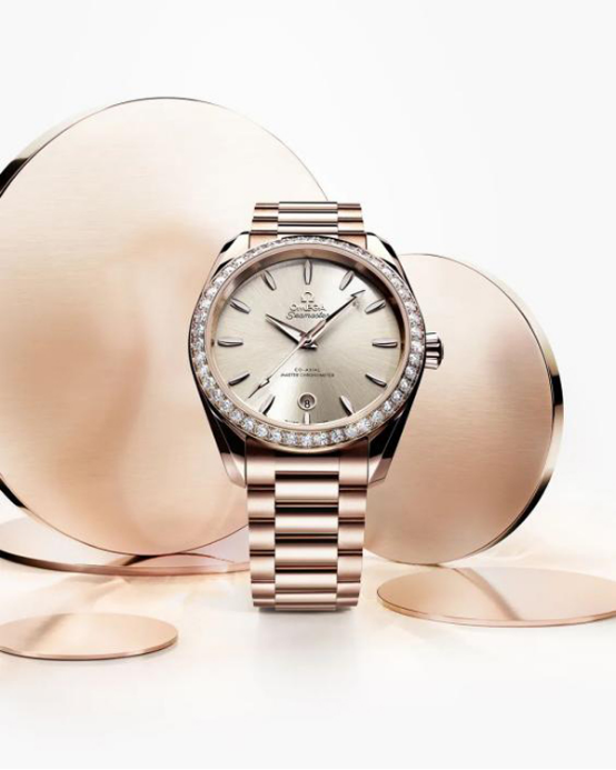 当然,对于想要在基础款式之上展露更多个人特色的女生来说,足够特别才足够令人喜欢。Aqua Terra Shades腕表有一款38毫米的全金腕表,采用欧米茄独家研发的Sedna 18K金打造而成,这一独特的红色18K金色泽雅致,且不易褪色。表圈镶饰46颗闪耀美钻,共1.77克拉。砂岩色表盘经CVD技术打造,呈现出太阳射线的打磨效果。