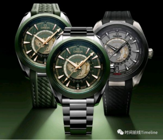但今年(2023)的新款欧米茄海马AT世界时,进行了升级,配置、颜值,都得到了进一步提升。包括钛壳灰盘、钢壳绿盘两款。