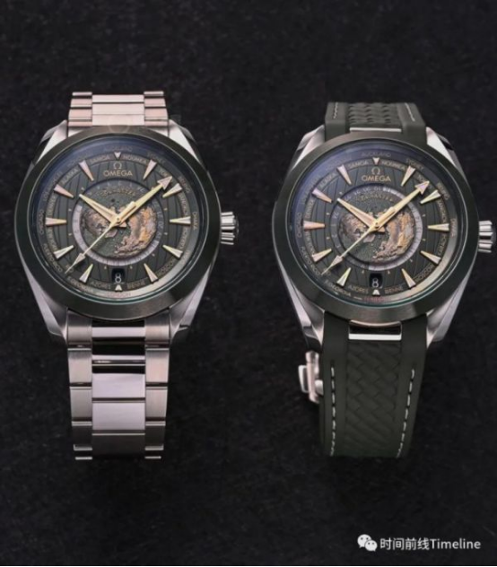 钢壳绿盘,整表抓人眼球;钛壳灰盘,彩色地球更加突出。