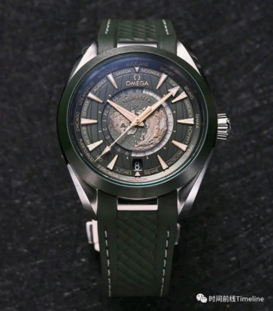 欧米茄新款海马AT世界时,世界地图细节