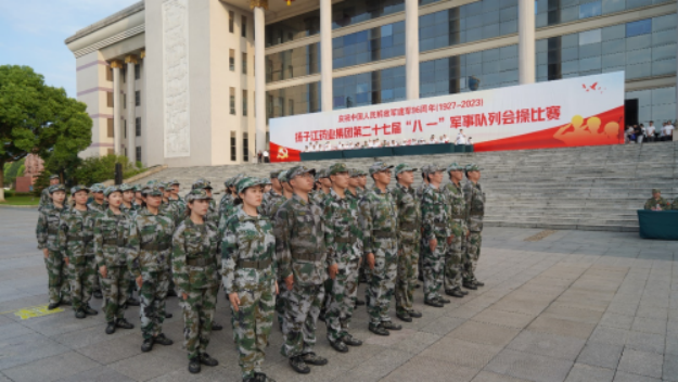 军旗飘扬,军号嘹亮。为庆祝中国人民解放军建军96周年,8月1日下午,扬子江药业集团第二十七届“八一”军事队列会操比赛在泰州总部举行。泰州市委常委、军分区司令员廖鹏,市退役军人事务局局长张兆洋,高港区人武部部长朱平平出席活动,扬子江药业集团党委书记、董事长、总经理徐浩宇现场观摩会操比赛并讲话。