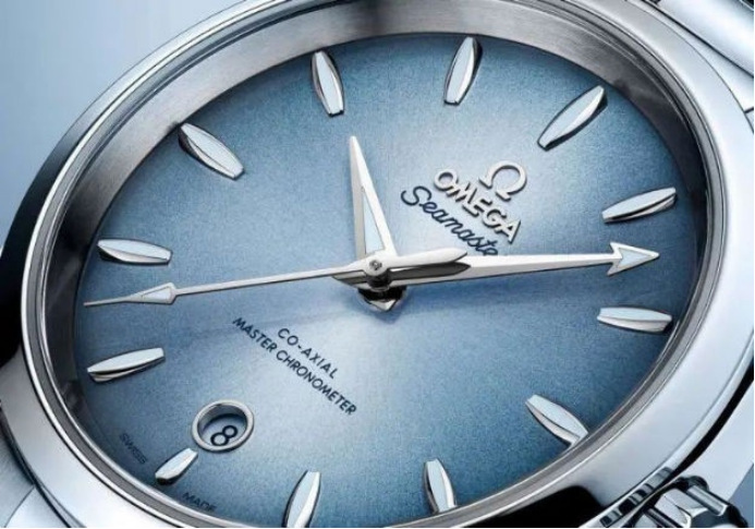 150米这个深度在海洋的层次中属于照光层。这次欧米茄海马纪念款在150米的防水区间,有三款作品。分别是 Aqua Terra 38毫米,41毫米和世界时腕表。表盘浅蓝色的渐变层次让人联想到夏日阳光下清澈透明的海水。