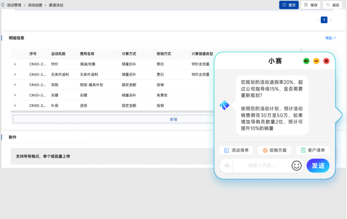 赛博威新一代多元营销费用管理,是TPM也不止是TPM,通过灵活配置,满足企业营销数字化全链路个性化需求。应用最新AI技术应用,减少手工报表,让人机沟通更顺畅,让业务人员轻松、快速、准确地获取所需信息。