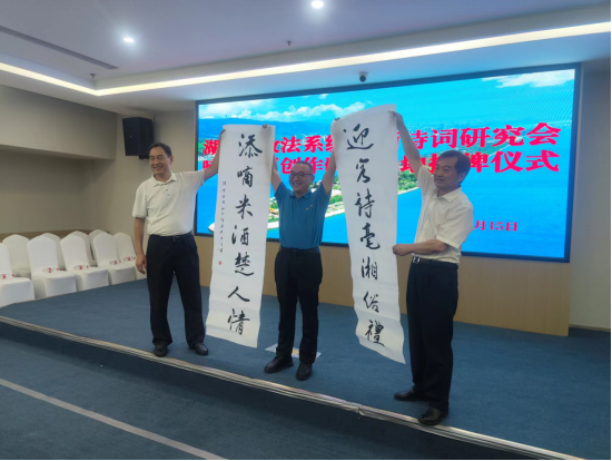 “迎客诗毫湘俗礼,添嘀米酒楚人情”。诗词分会主席陈岭为嘀嘀酒店盛情赋诗一首,并由研究会副会长刘庆富和书法分会副主席吴若顺写成书法作品,现场赠送给嘀嘀酒店,将活动气氛推向高潮。