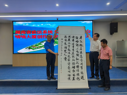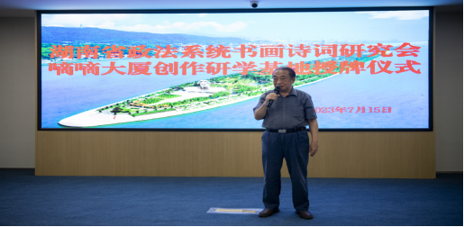“全面建设社会主义现代化国家,必须坚持中国特色社会主义文化发展道路,增强文化自信。文化是民族之根。应该读好‘两本书’,一本是有字的经典之书,一本是无字的实践之书。嘀嘀大厦紧邻长沙火车站,来往交通方便,文化气息浓厚,在长沙法官文联学雷锋书画工作站的基础上,进一步成立政法文化创作研学基地,开展各种有意义的诗词书画文艺活动,可以助力实现‘以文兴商、以商促文’的双赢目的,为建设社会主义文化强国贡献出我们应有的心智和力量。这样的政法文化创作研学基地多多益善。”彭对喜对活动给予高度肯定。