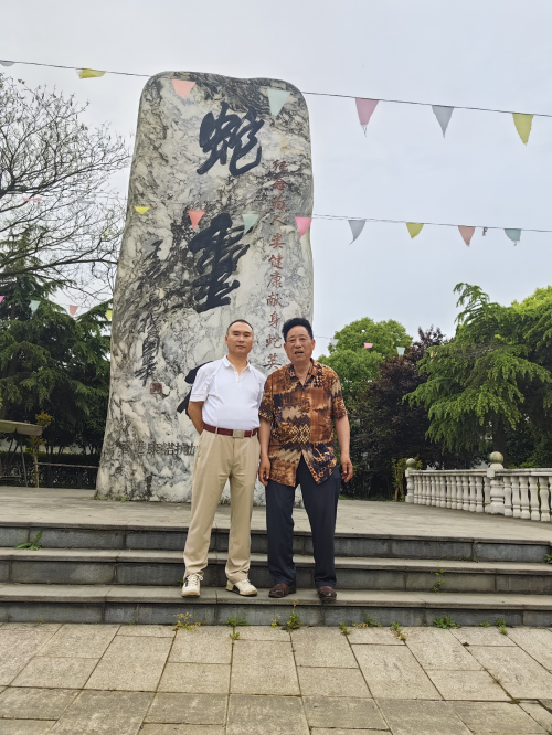 图为采访结束《中国新时代党建》杂志社、《中国新时代党建新闻网》杨程喜执行总监与“蛇王”杨洪昌在一起合影留念