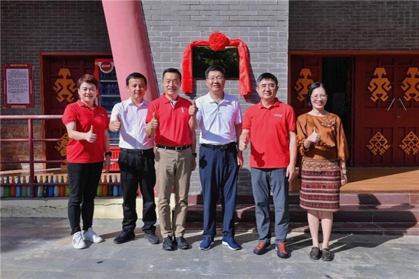 毛道乡“消碳庄园”揭牌,从左到右分别为:海南太古可口可乐总经理宋丽华、五指山市人民政府党组成员、副市长高亮、太古可口可乐中国区首席执行官党建、中国绿化基金会副主席兼秘书长陈蓬、可口可乐大中华及蒙古区副总裁张建弢、毛道乡党委书记黄凌凤