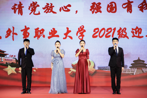 在孙彤宇副校长演讲之前,晚会呈现了精彩纷呈的多个节目。晚会在合唱《大鱼》《明天你好》优美的歌声中拉开帷幕,演唱者为五年一贯制2021级新生合唱团,深情的演唱、优美的旋律引起了现场观众共鸣。配乐诗朗诵《请党放心 强国有我》让人们看到祖国新一代对实现强国梦的信心。由我校空中乘务专业学生带来的《空乘礼仪展示》在活力四射的音乐中上演,俊男靓女着装整齐,仪态大方,展示空乘学子的青春风采。来自山东艺术学院的青年歌唱家李章栋倾情演唱《灯火里的中国》,旋律悠扬、紧扣时代,展现了灯火里的繁花似锦和安详宁静、奋发图强和生生不息。