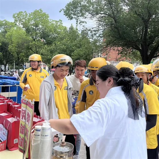药房工作人员还为骑手们准备了防暑解渴的花茶饮,并殷切叮嘱他们注意防暑、安全出行,贴心关怀,让骑手们感受到夏日的阵阵清凉与丝丝关爱。