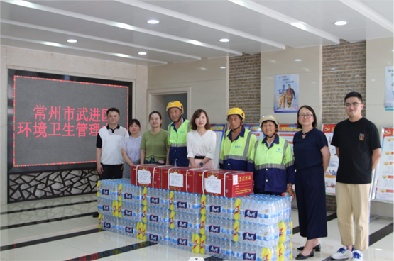 全亿健康常州分部总经理张云向辛勤工作的环卫工们送上诚挚的问候,再三叮嘱夏季高温天气,大家要时刻注意身体状况,做好防暑降温和防疫工作,感谢他们用勤劳的双手为我们营造了整洁、舒适的环境。