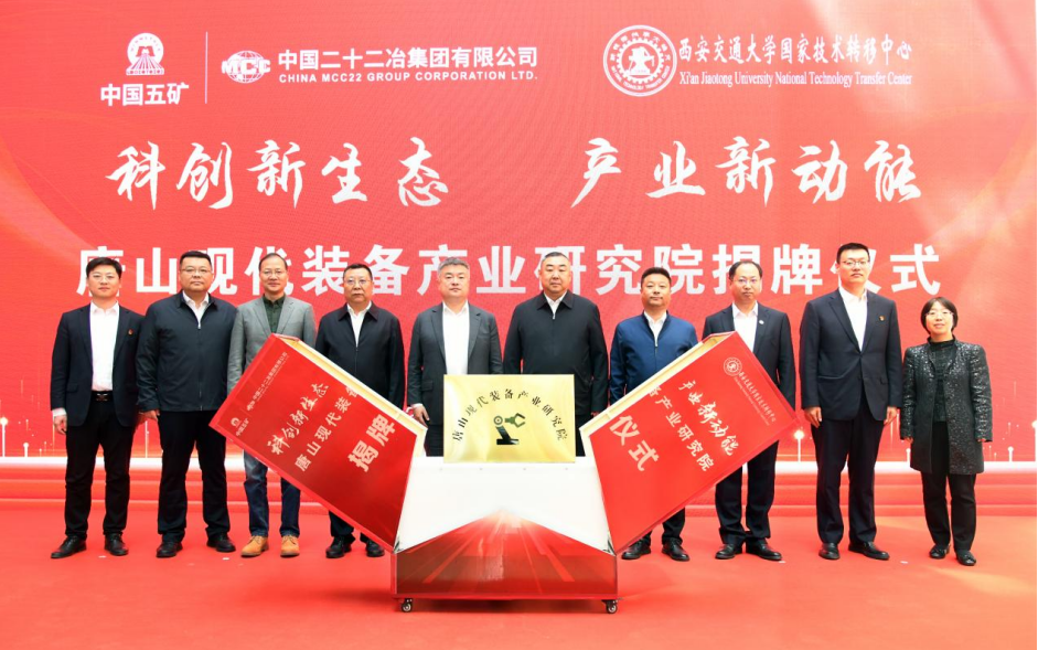 4月18日上午,中国二十二冶集团与西安交通大学共同联合创建的唐山现代装备产业研究院揭牌仪式在中国二十二冶中冶重工唐山公司举行。唐山市工业和信息化局副局长贺川、高新区管委会副主任武昌明,西安交通大学国家技术转移中心主任王文,中国二十二冶集团有限公司副总经理韩冰出席活动,贺川、武昌明致贺词,贺川、武昌明、王文、韩冰为唐山现代装备产业研究院揭牌。中国二十二冶集团有限公司副总工程师慈国强主持会议。