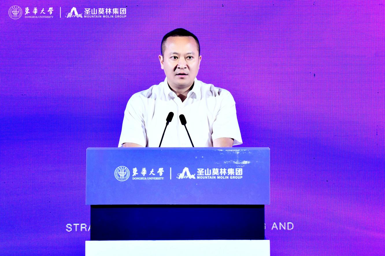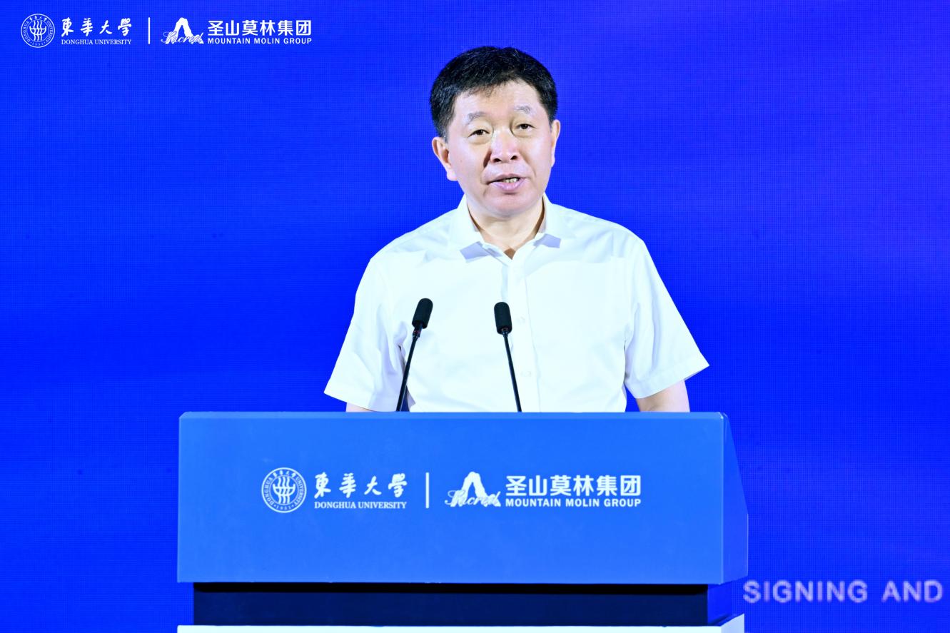 中国工程院院士、东华大学校长俞建勇出席仪式并致辞,他表示,东华大学是新中国成立的第一所纺织高等学府,也是教育部直属、国家“211 工程”、国家“双一流”建设高校。五粮液集团是“全球规模最大、生态环境最佳”和“最有价值品牌”特大型现代企业,圣山莫林集团作为五粮液集团多元板块子集团,深耕纺织服装行业,积极服务地方经济发展。此次东华大学与圣山莫林集团合作设立联合创新中心,是贯彻落实党的二十大对教育、科技、人才工作统筹部署的重要举措,是双方深化科教融合、产教融合,抢抓机遇、共谋发展的新思路与新探索,是双方“情相融”“力相聚”,互惠共赢、共谋发展的新起点。希望双方以共建“东华大学-圣山莫林集团联合创新中心”为契机,充分发挥东华大学在纺织、材料等前沿领域的研发和创新优势以及圣山莫林集团的市场和资金优势,在时尚设计、面料开发、服装研发、成果转化以及毕业生就业等方面开展更高层次的交流与合作,合力谱写校企合作、产教融合的新篇章。