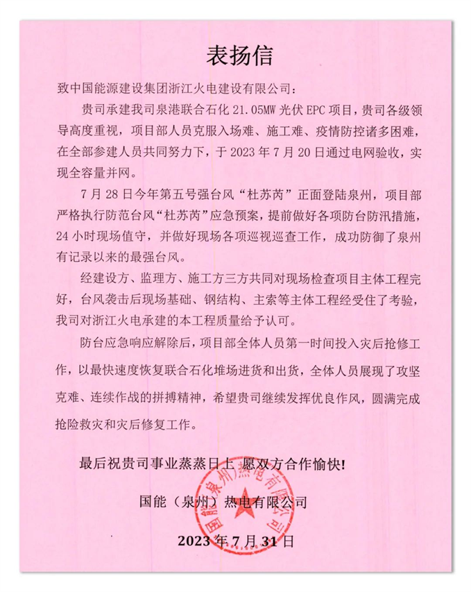 本次遭遇超强台风“杜苏芮”,是泉港联合石化光伏EPC项目从建设到并网以来经历的最严苛的挑战;也是索结构柔性光伏支架系统在实际建设项目中遇到的最强自然风暴。从某个角度讲,索结构柔性光伏支架系统以实际建设标准,在自然环境下经受了一次非模拟状态的“风洞试验”。
